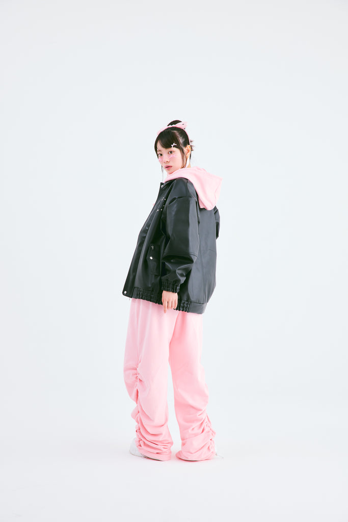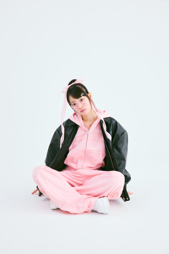 同時にリリースするスウェットのセットアップとのスタイリングは