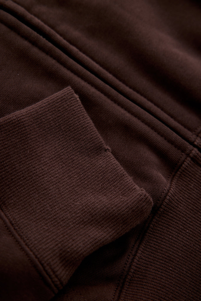 胸元のロゴのフリンジ感に合わせて、フード・袖・裾にも程よくダメージ加工を施していて