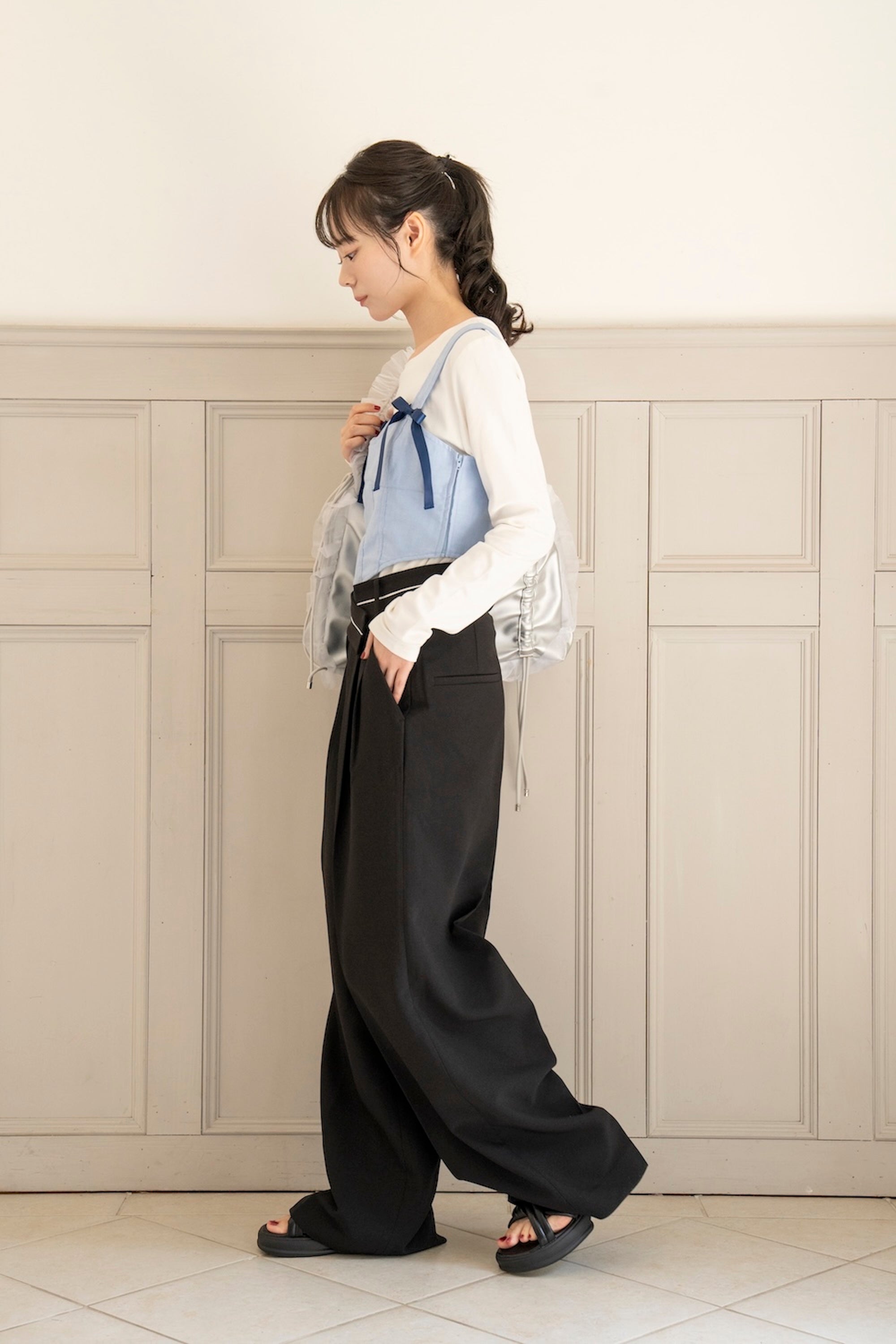 脚長効果はもちろん、腰回りがスッキリするようにデザインしました♡