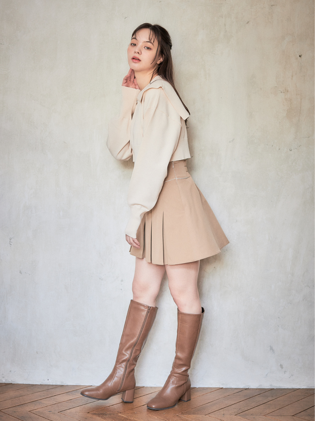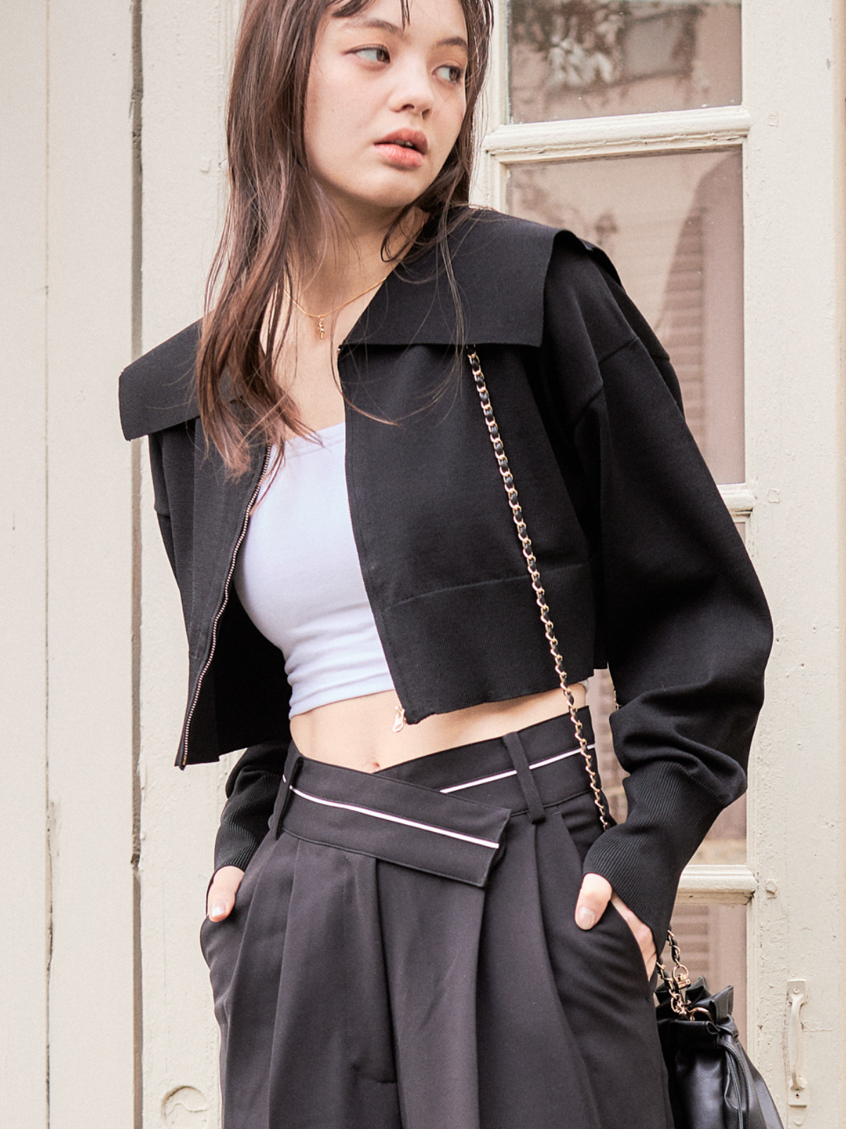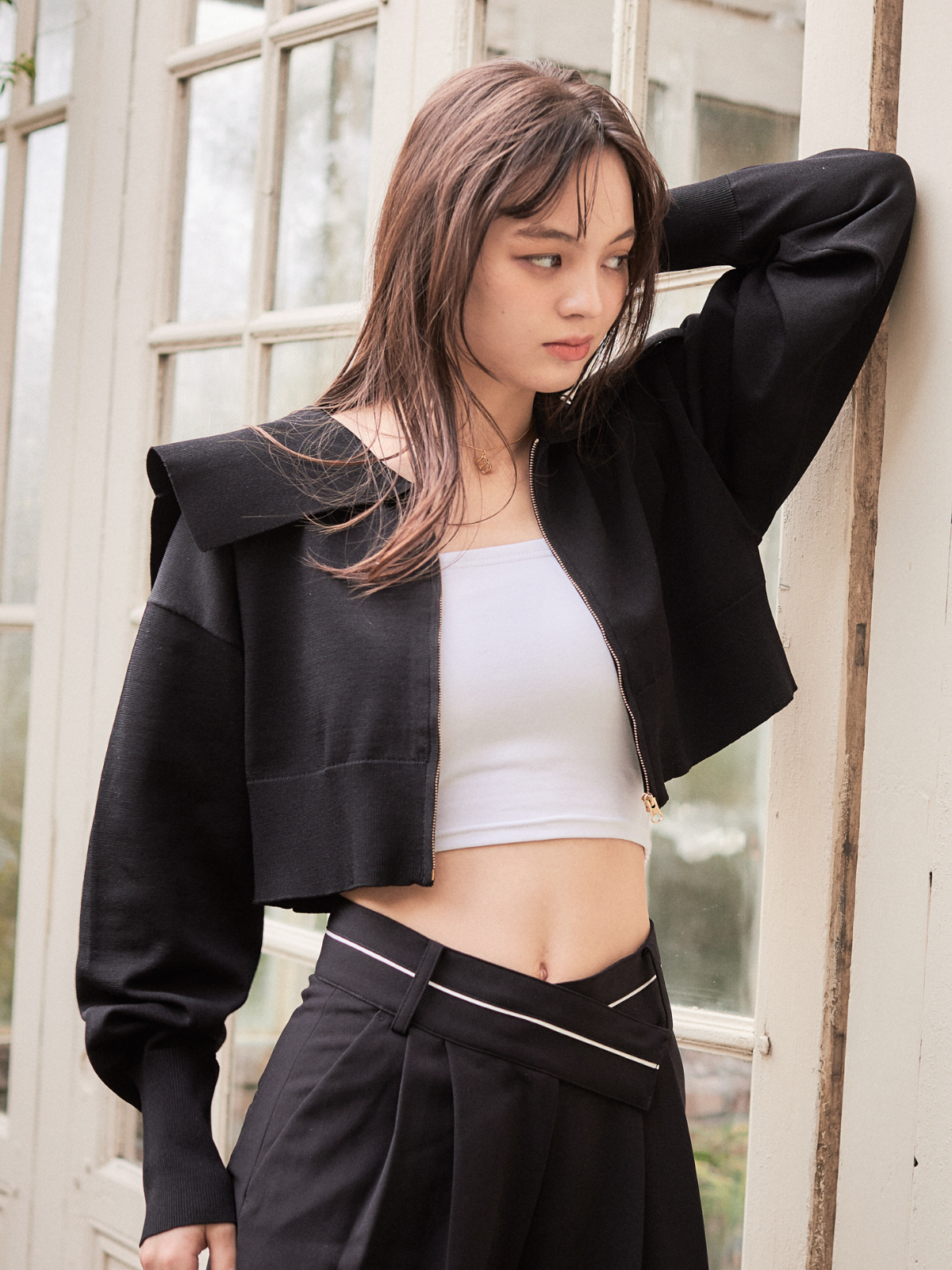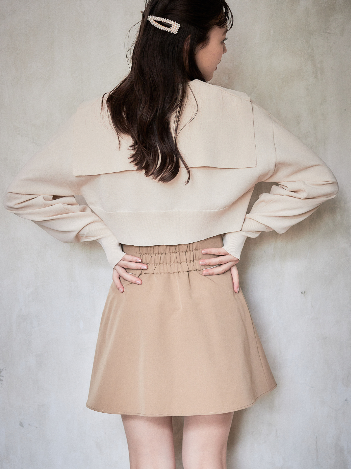 スッキリ見えするショート丈デザインなので、合わせるアイテムを選ばず着回しいただけます。