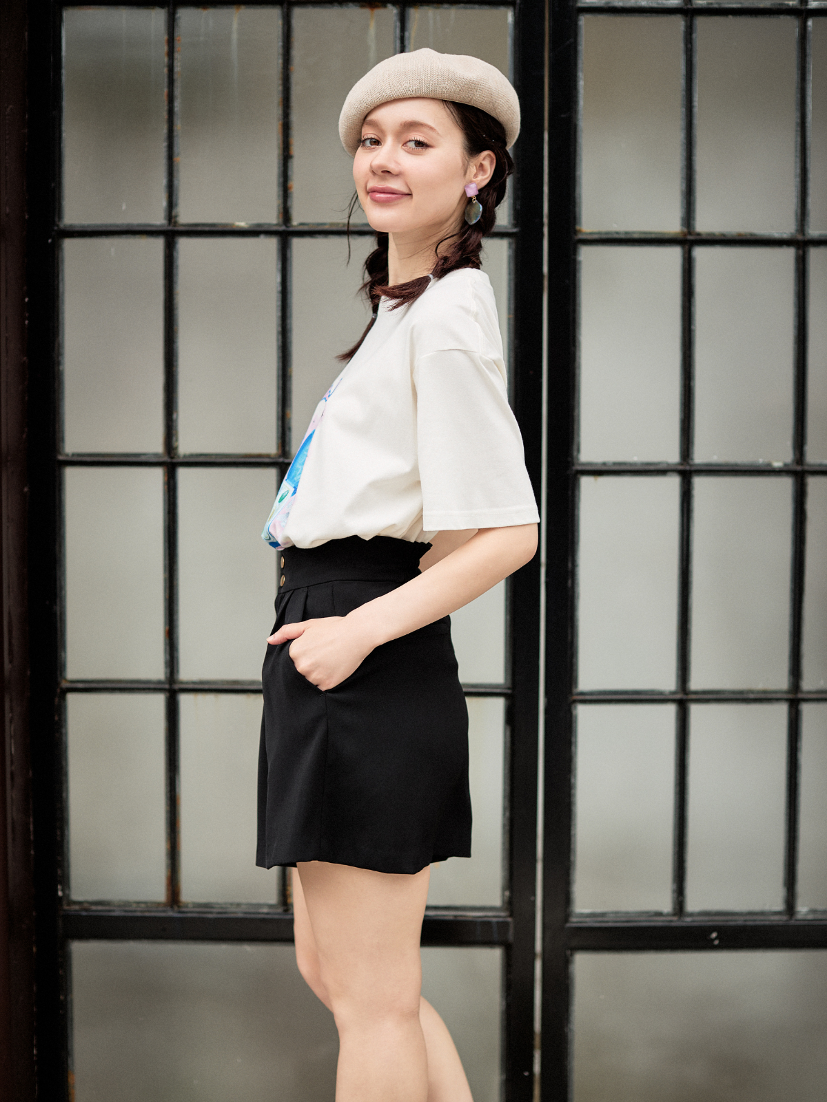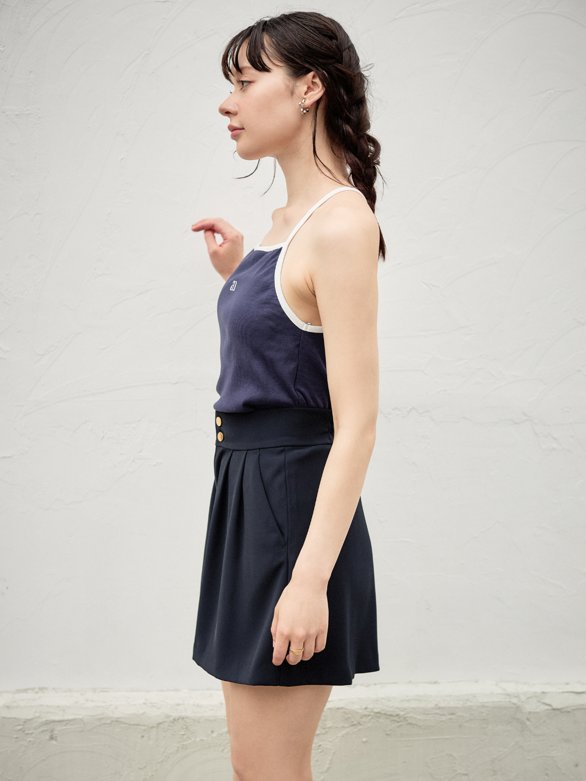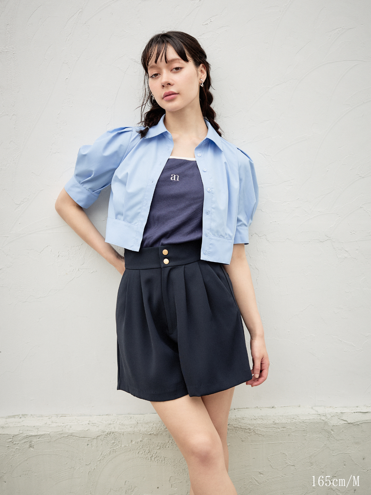 たっぷりとしたタックや、ベルト背面のゴム仕様で