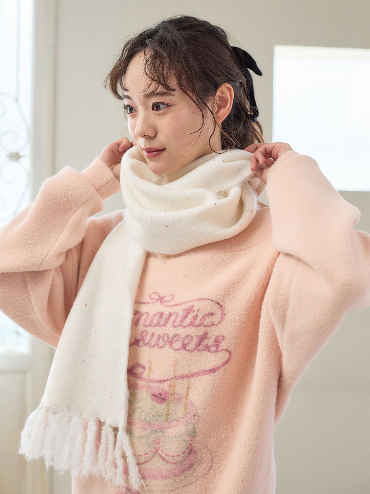 AnnMiru新作のカラースプレーマグ&プレートとお揃いのカラースプレーをイメージしたマフラーです。