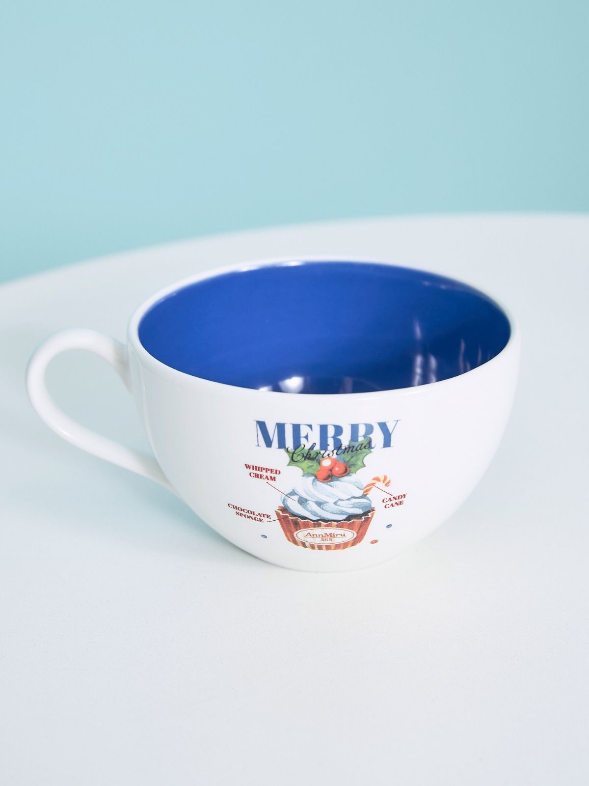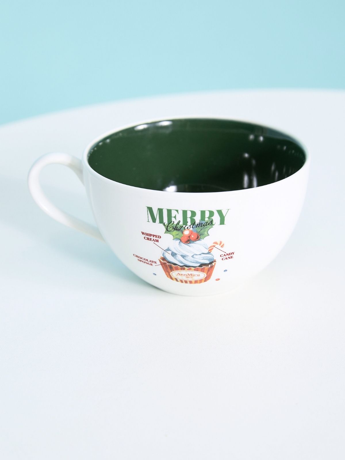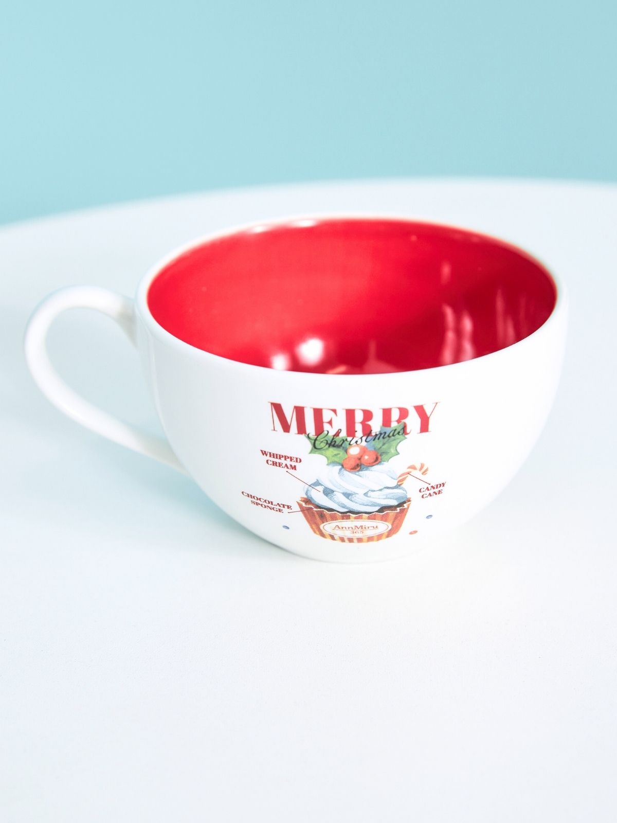クリスマスカップケーキが描かれたマグカップ。