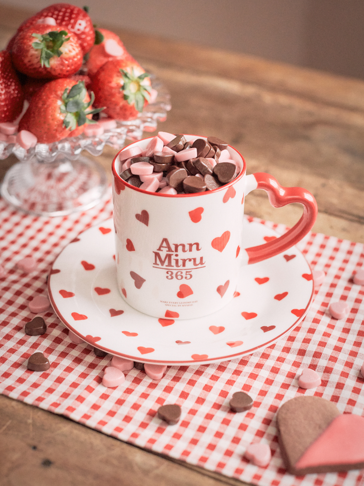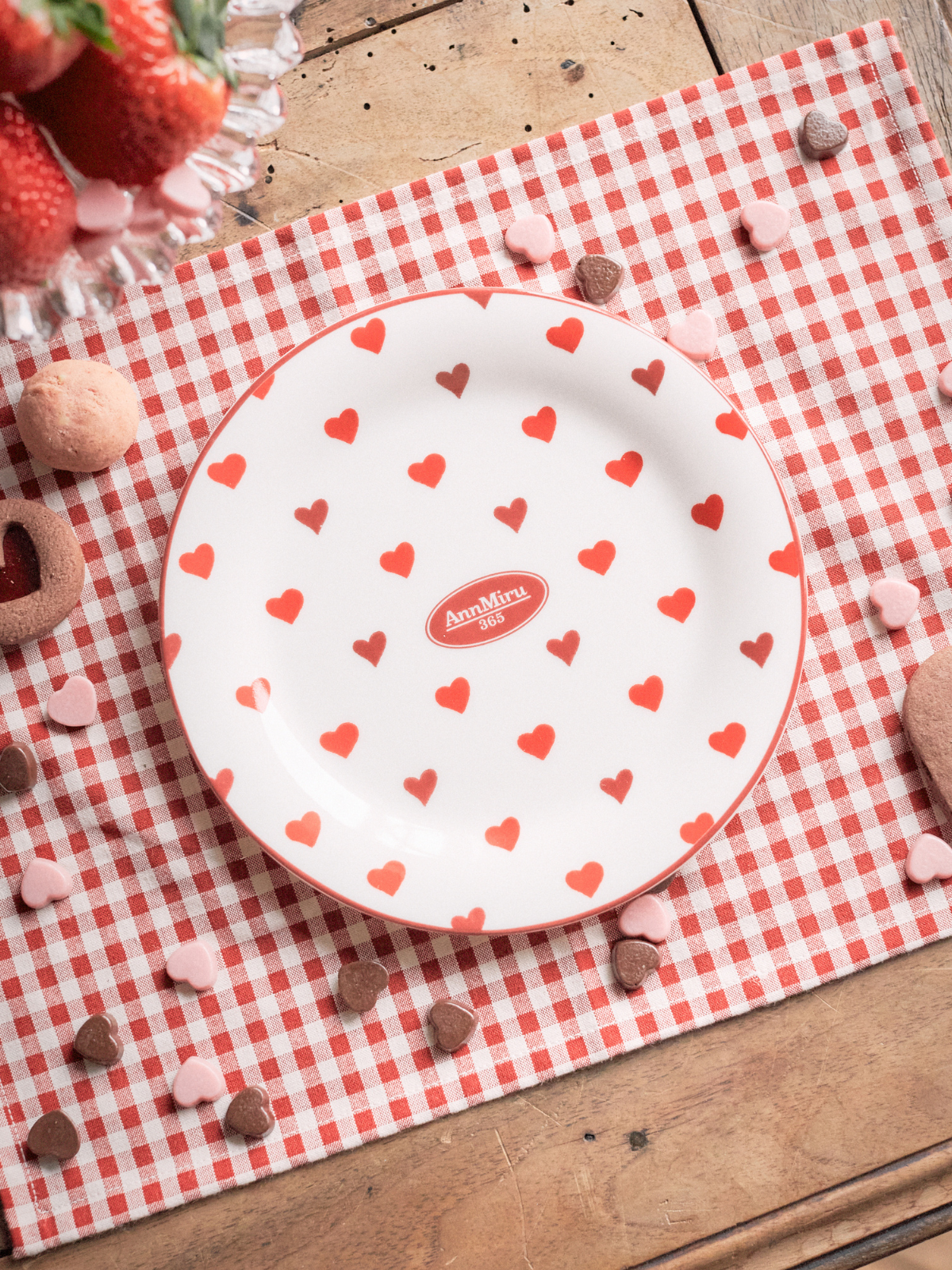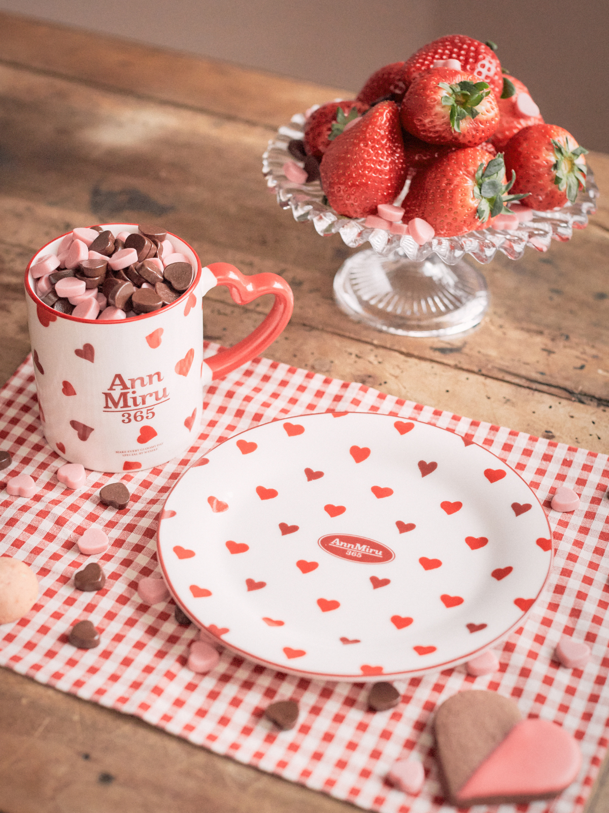 ミルが手書きで描いたハートをデザインにしたプレート。マグカップとセットで使うのもおすすめです。