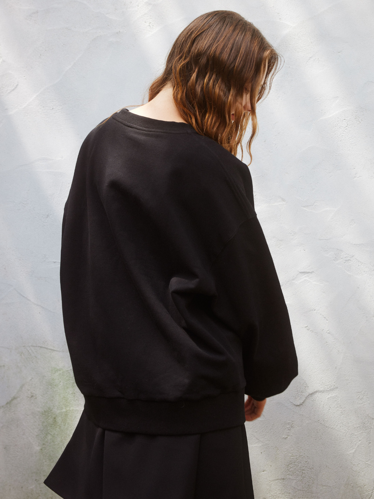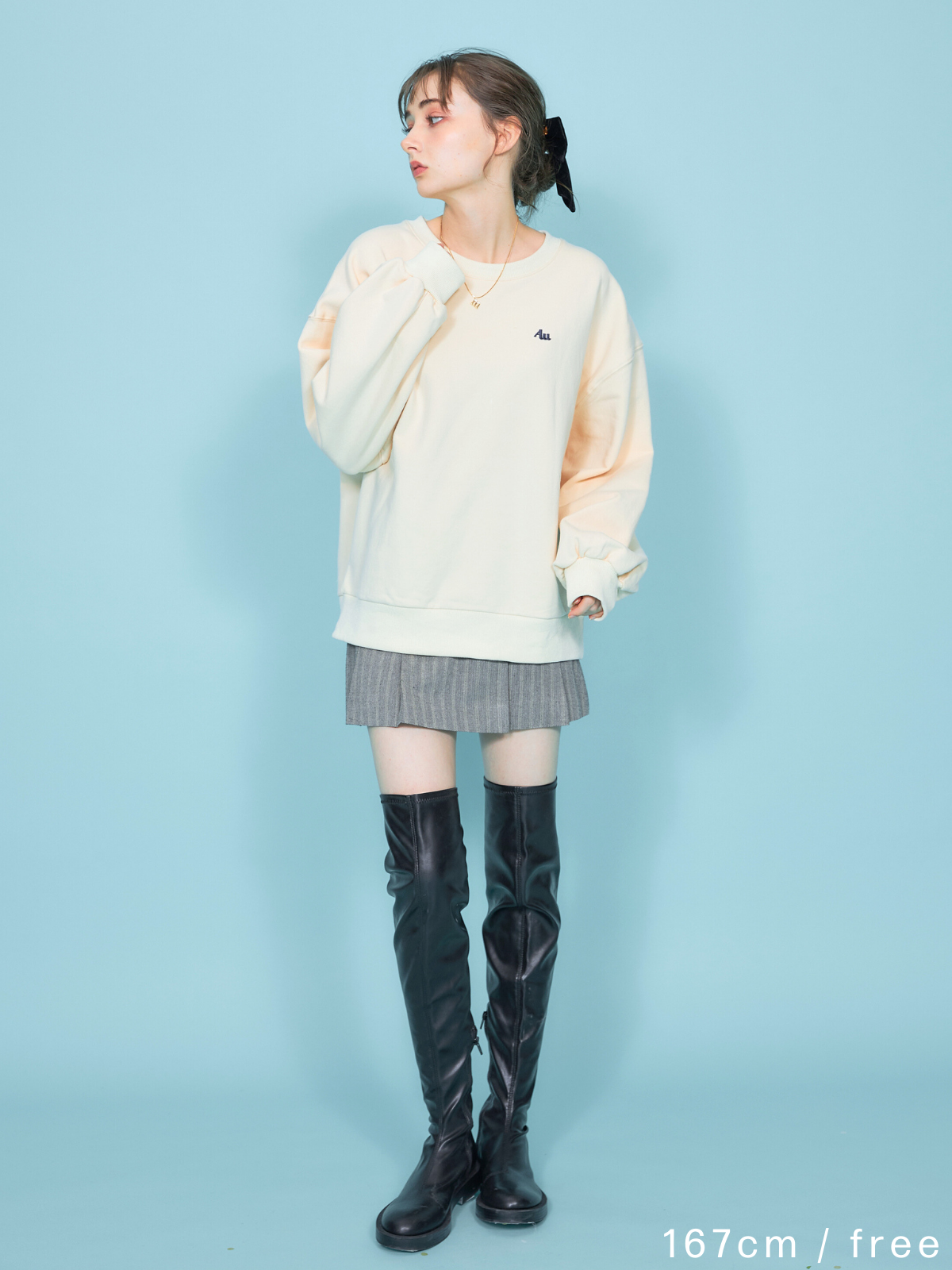 薄すぎず、厚すぎない程よい肉感の裏起毛生地なのでロングシーズン活躍してくれます。ヒップラインが隠れる長めの着丈とオーバーサイズで、体型を綺麗にカバー。